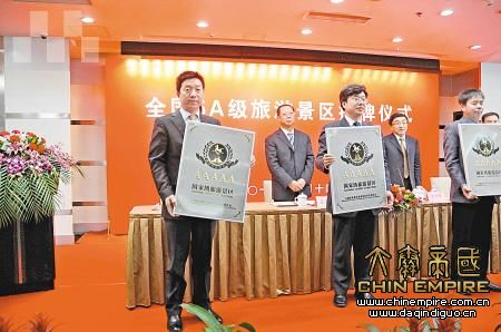 (图)西安曲江景区代表领取国家5A级景区认证牌