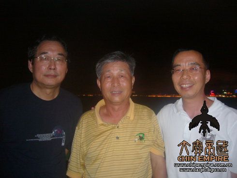 在老友王嘉祥阳台,右白衣是广东省律师协会副会长崔峰,背后是澳门夜景。
