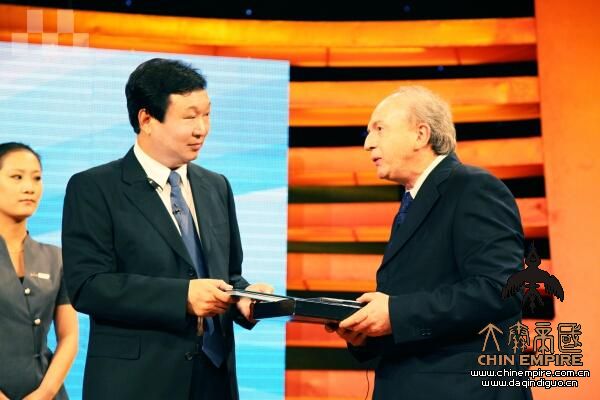 (图)与罗马议会办公室主任维达利诺·达曲里博士交换礼物