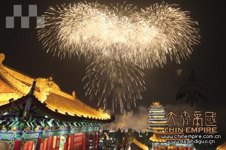 烟花掩映下的赵公明财神文化景区璀璨夺目